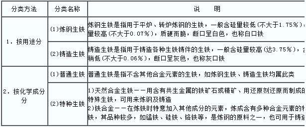 1.生鐵的分類(見表)